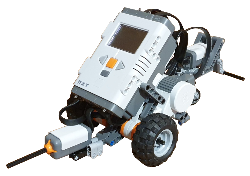 Der Roboter soll zwischen zwei Gegenständen hin- und herfahren. Dabei stößt er mit den beiden Touchsensoren