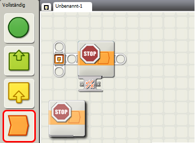 STOP-BlockJeder Roboter hat in echt einen Notschalter - und auch unser Roboter kann das haben! Der Block "Stop" hält das laufende Programm an und stoppt damit alle Motoren und alle andere Aktionen. Zur Programmierung |