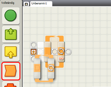 Schleifen (Loops)Ein Roboter soll mithilfe von zwei Touchsensoren in einem Türrahmen hin- und herfahren. Eine solche endlose Wiederholung ermöglicht der Schleifenblock. Zur Programmierung |