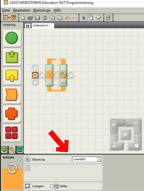 Bei diesem Block kannst du versiedene Steuerungen für den Schleifen- Block einstellen.