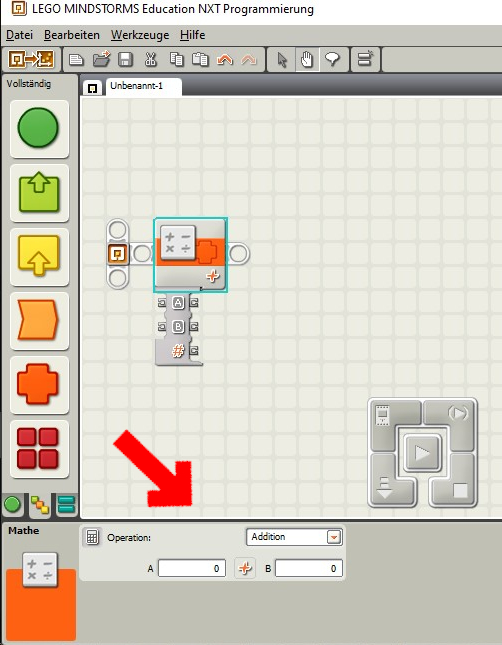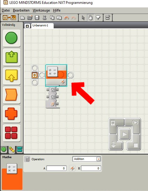Bei diesem Block kannst du zwischen Addition, Subtraktion, Multiplikation, Division, sowie zwischen Potenz und Wurzel wählen.
